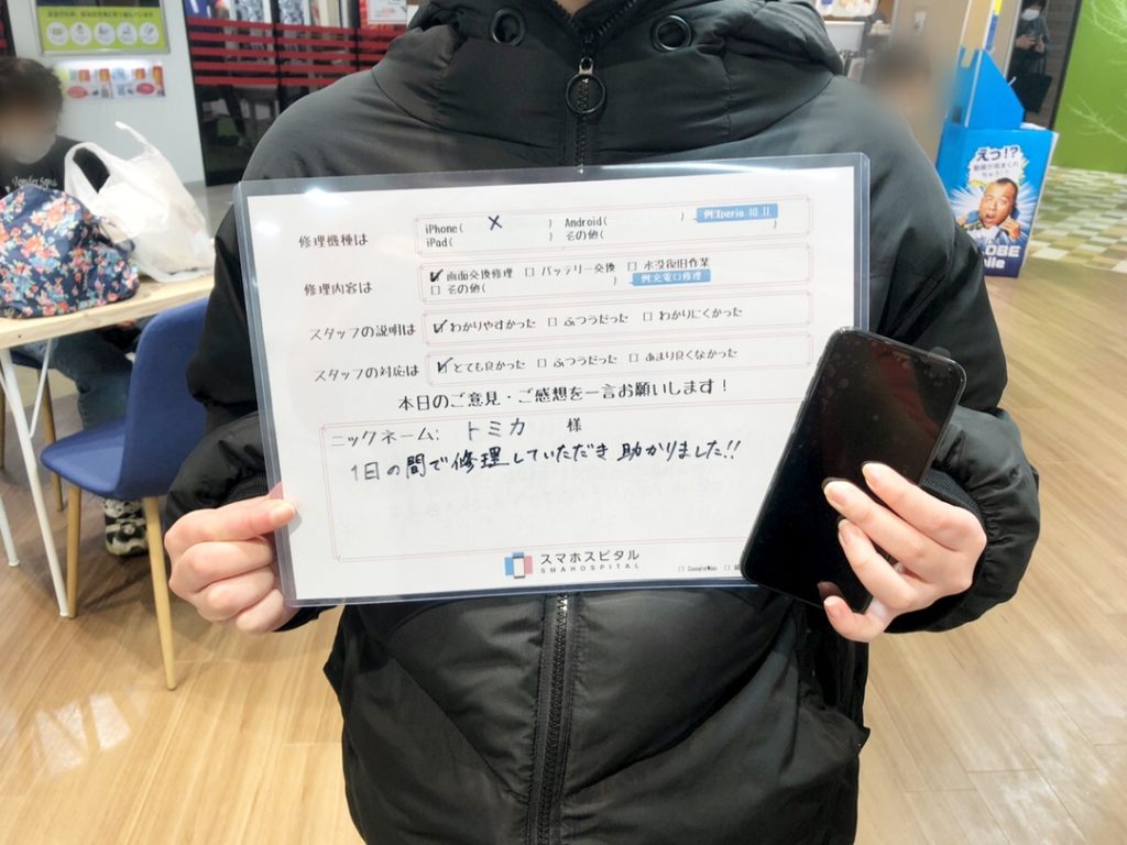 スマホスピタル厚木ガーデンシティ 【iPhoneX】ガラス+液晶故障による交換修理 『トミカ様』よりのコメントを頂きました。