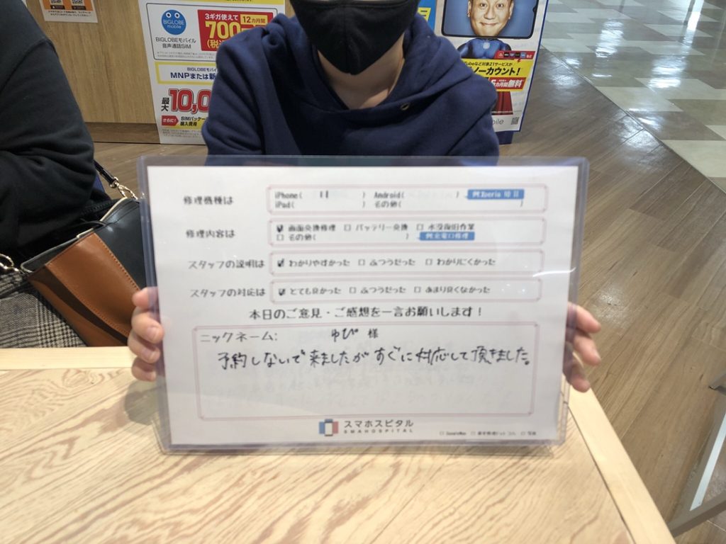 スマホスピタル厚木ガーデンシティ 【iPhone11】ガラス+液晶故障による交換修理 『ゆぴ様』よりのコメントを頂きました。