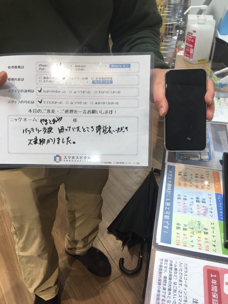 スマホスピタル厚木ガーデンシティ 【iPhone11】バッテリー劣化による交換修理 『やまとやま様』よりのコメントを頂きました。