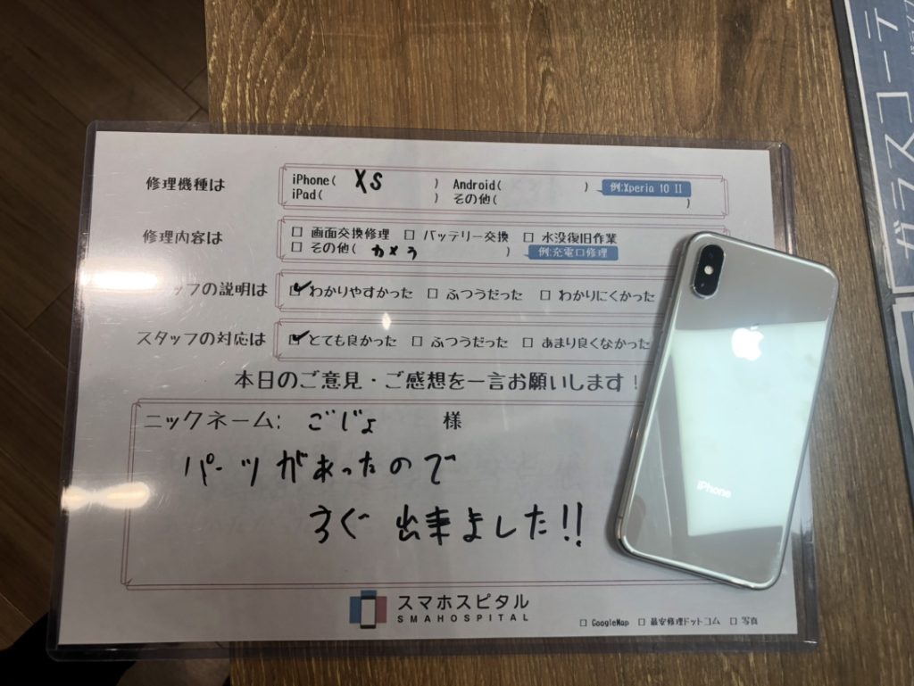 スマホスピタル厚木ガーデンシティ 【iPhoneXS】カメラ故障による交換修理 『ごじょ様』よりのコメントを頂きました。
