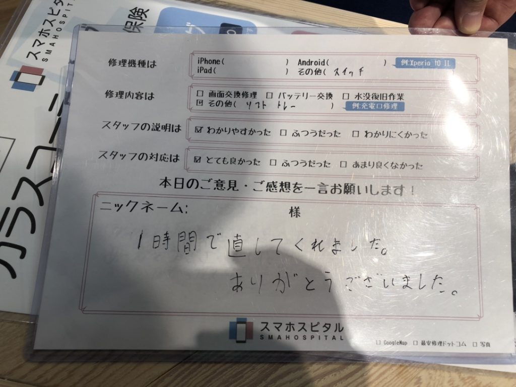 スマホスピタル厚木ガーデンシティ 【Switch】ソフトトレー故障による交換修理 『いそまる様』よりのコメントを頂きました。
