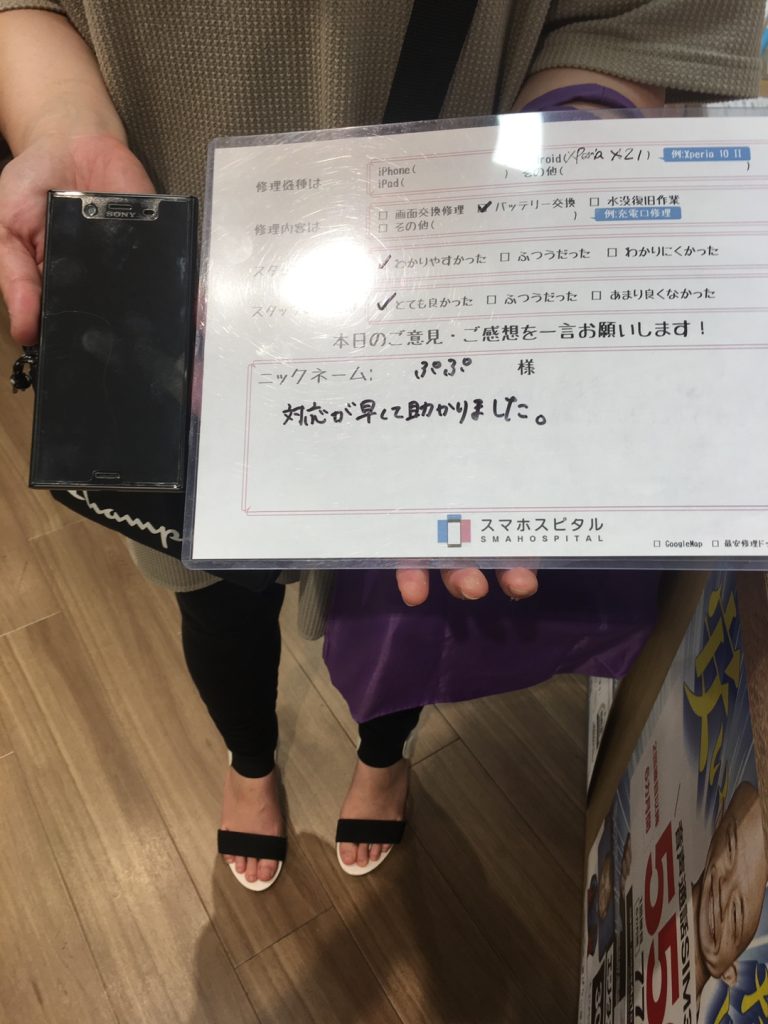 スマホスピタル厚木ガーデンシティ 【Xperia XZ1】バッテリー膨張による交換修理 『ぷぷ様』よりのコメントを頂きました。