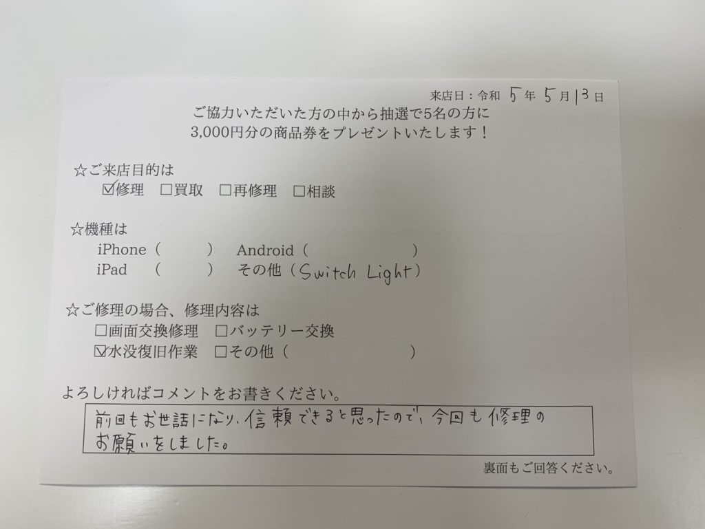スマホスピタル厚木ガーデンシティ Switchlite 水没復旧作業を行いました。