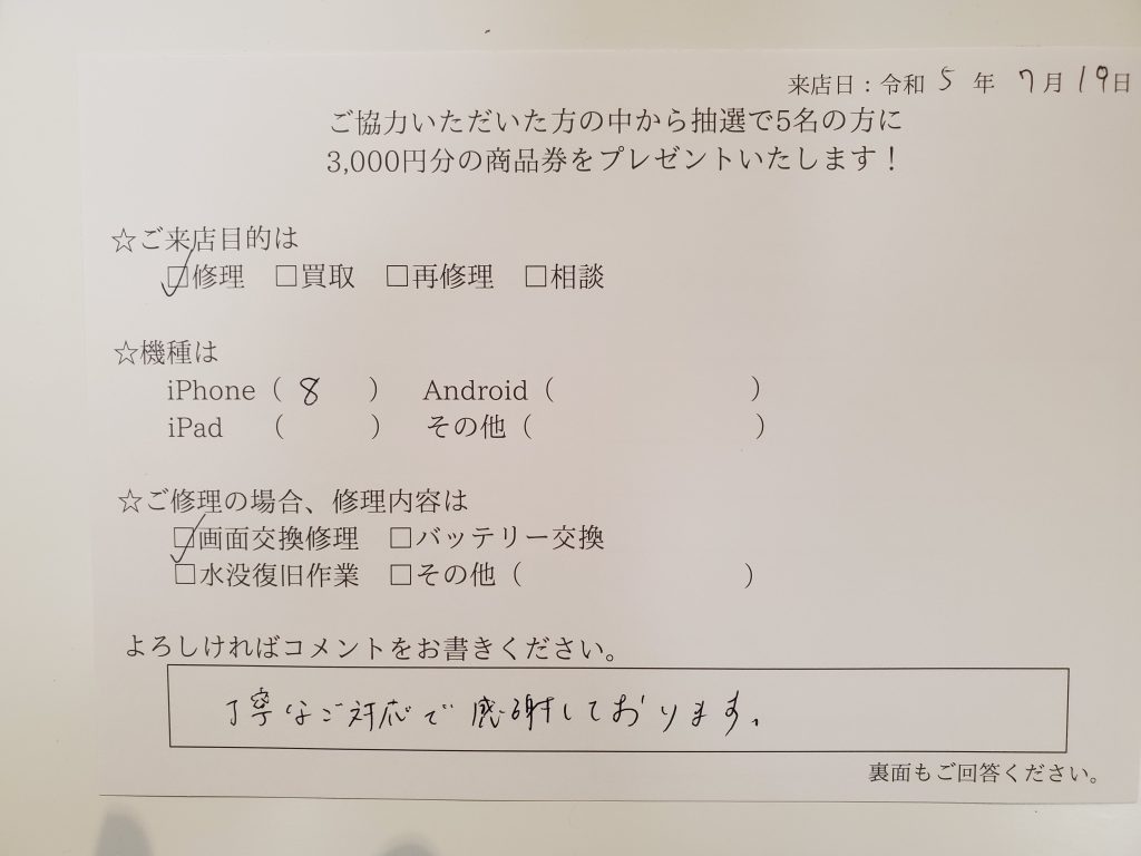 スマホスピタル厚木ガーデンシティ iPhone8画面交換を行いました