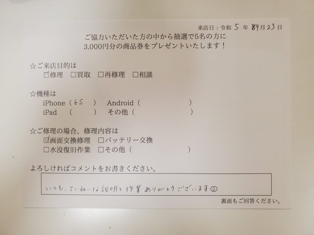 スマホスピタル厚木ガーデンシティ iPhone6s画面交換を行いました