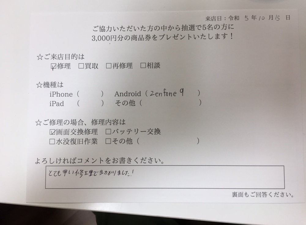 スマホスピタル厚木ガーデンシティ Zenfone9の画面交換を行いました