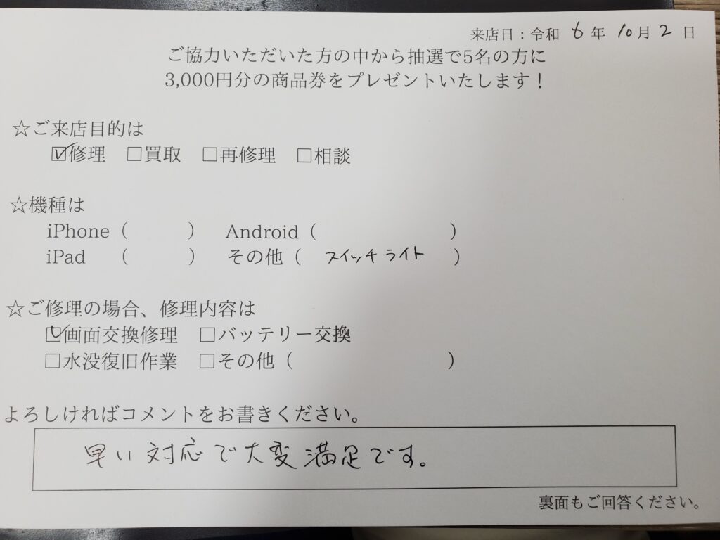 スマホスピタル厚木ガーデンシティ 任天堂switchLiteの液晶交換を行いました