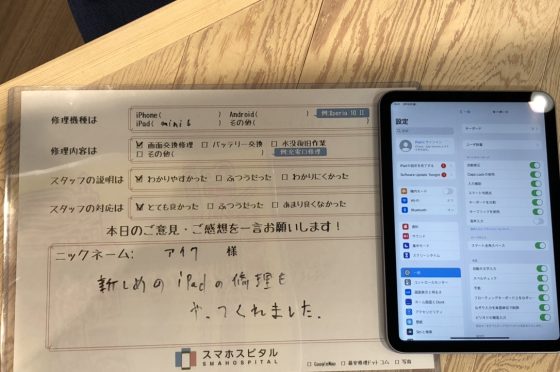 【iPad mini6】ガラス+液晶による交換修理 『アイク様』よりのコメントを頂きました。