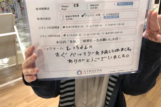【iPhoneSE】バッテリー劣化による交換修理 『むっちゃん様』よりのコメントを頂きました。