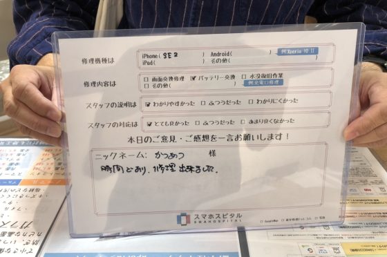 スマホスピタル厚木ガーデンシティ お客様の声