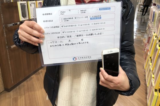 iPhone7によるバッテリー交換修理 『R様』よりのコメントを頂きました。