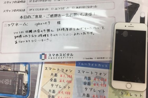 【iPhone7】ガラス+液晶不良とバッテリー故障による交換修理 『iPhone7様』よりのコメントを頂きました。