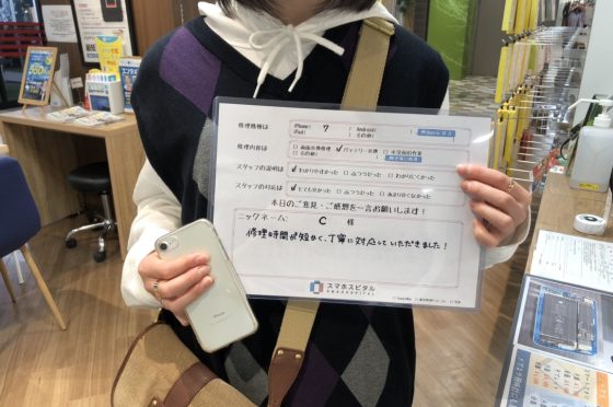 【iPhone7】バッテリー劣化による交換修理 『C様』よりのコメントを頂きました。