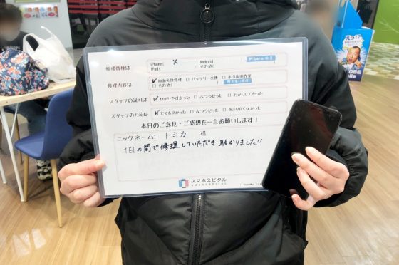 【iPhoneX】バッテリーによる交換修理 『T.A様』よりのコメントを頂きました。