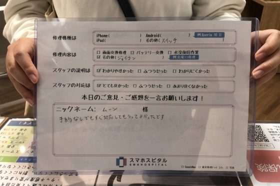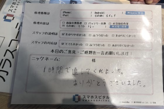 弊社の修理サービスをご利用いただいきましたお客様の声です。
