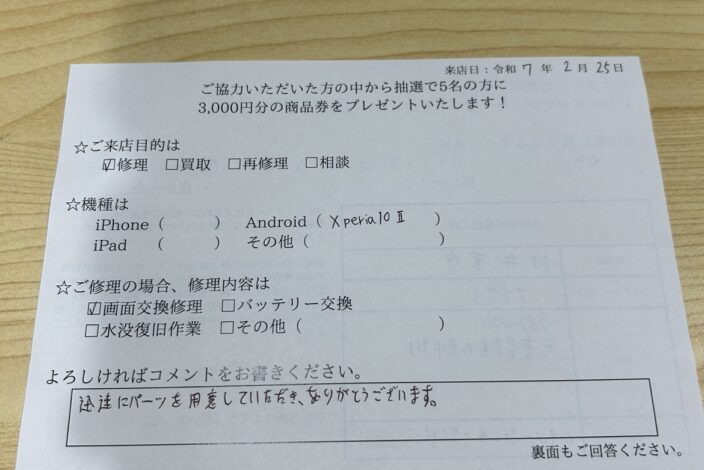 ご迷惑おかけしますが、保証期間中のお客さまはスマホスピタル 船橋店または郵送修理依頼ページからお問合せください。