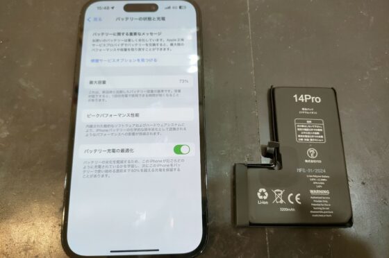 iPhone14Proのバッテリー交換でご利用いただきました!バッテリー交換目安の確認からでもお気軽にご相談ください♪
