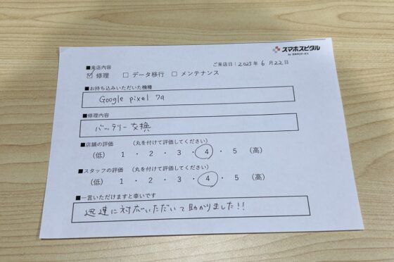 Googlepixel7aのバッテリー交換をさせていただきました。
