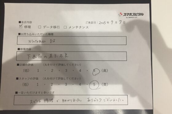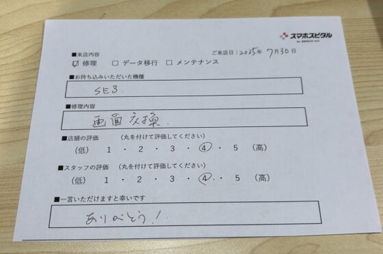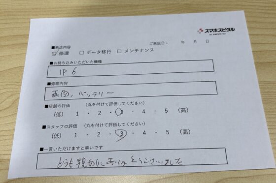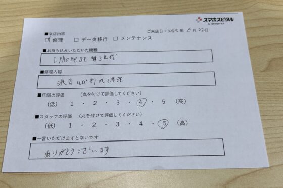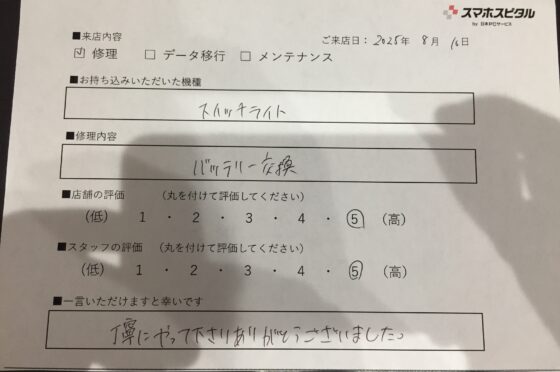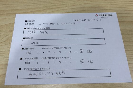 弊社の修理サービスをご利用いただいきましたお客様の声です。