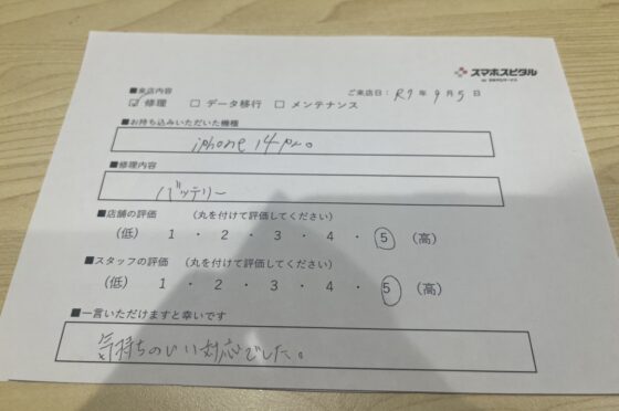 iPhone14Proのバッテリー交換でご利用いただきました!