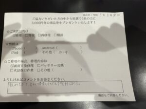 予定よりも安くて、早く修理してもらえて感動しました