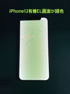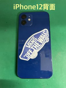 こちらが修理後のiPhone12の端末でパネルの交換修理で、緑色の画面は改善させました。