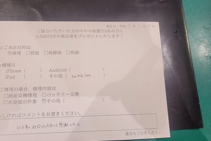 - スマホ修理、Switch修理、iPad修理など幅広い対応が可能