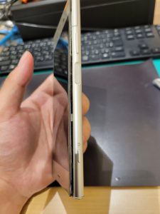 まだ何も修理作業はしていないにもかかわらず、液晶画面と本体に隙間ができています。