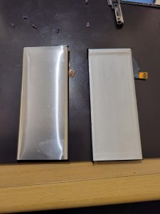 少しわかりにくいかもしれませんが、左側のバッテリーが膨張したものですが