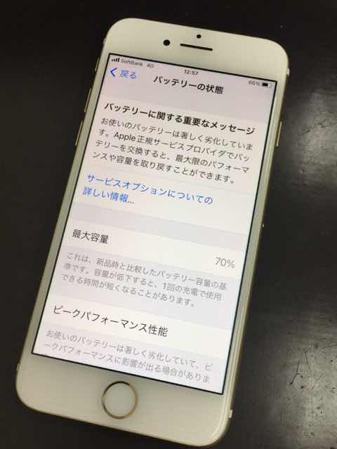 こちらのiPhone7はバッテリーが劣化している状態となります。