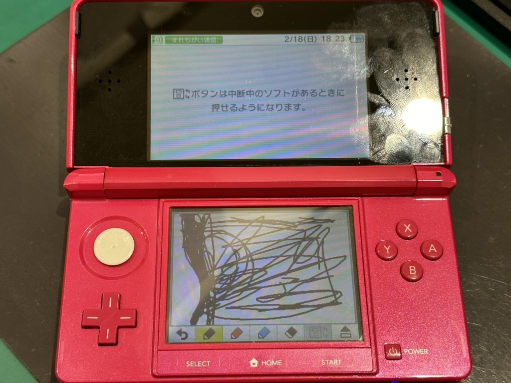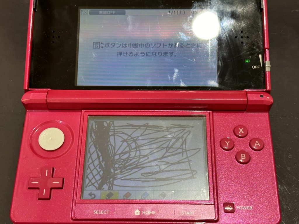 今回お持ち込みいただいたのはタッチパネルが一部効かなくなってしまった3DSです!