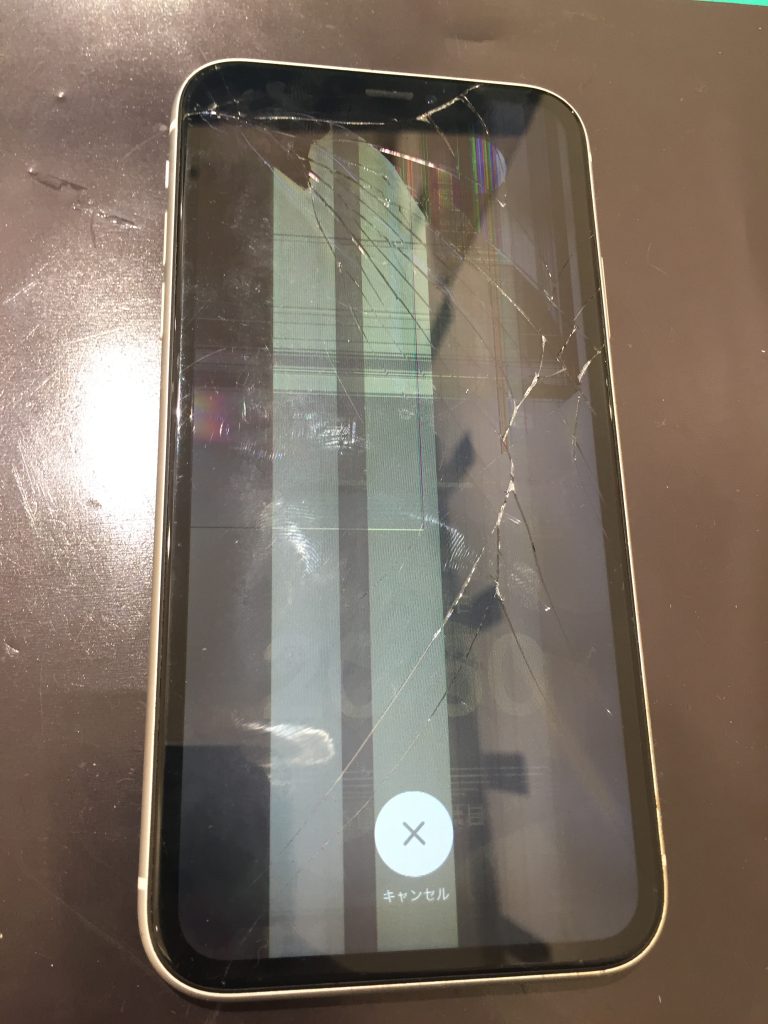 【iPhoneXR】落としてしまった際に画面割れと液晶画面が映らなくなってしまった…データそのままで修理しました。