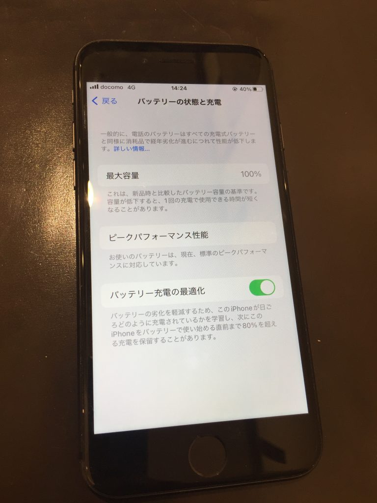 【iPhone8】バッテリー最大容量77%…バッテリー交換修理で減りの早さが改善しますよ!