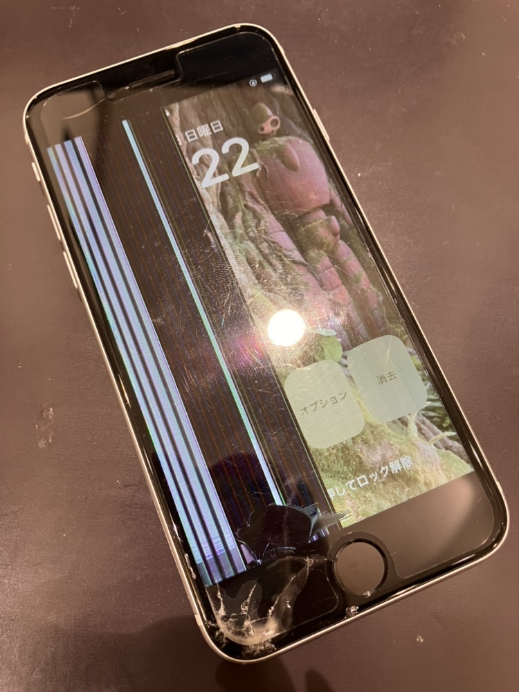 【iPhoneSE2】半分見えない画面でも修理で綺麗になります!