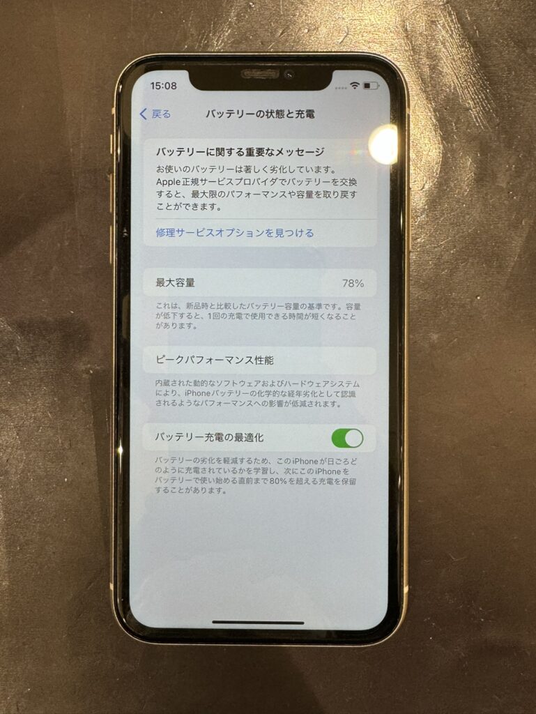 そのため、「バッテリーの状態」が80%を下回ったら交換を検討するのが一般的です。iPhone XRも例外ではなく、日々の使い方によっては早期の交換が必要になることもあります。