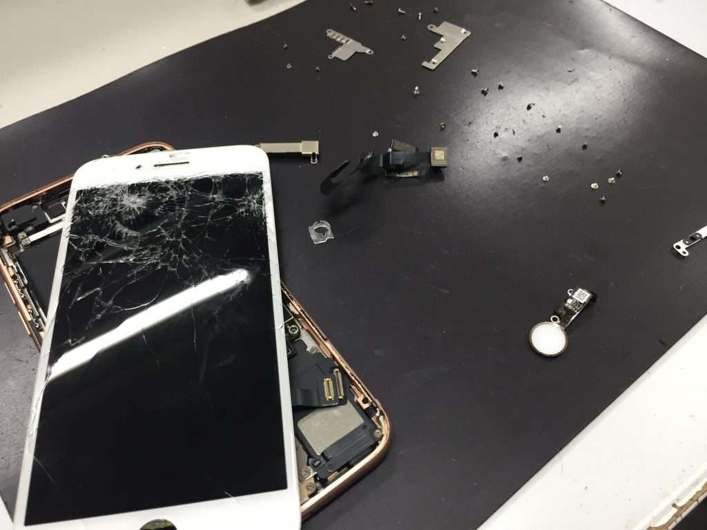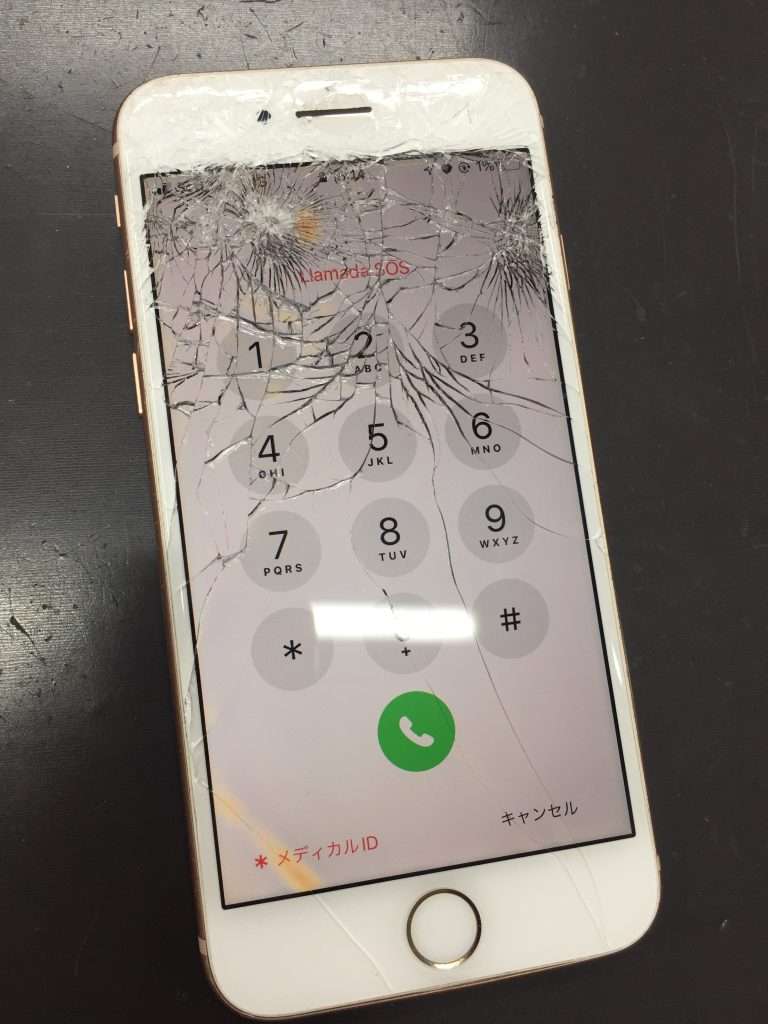 【iPhone修理】落としてしまって画面がバキバキのiPhone8…即日修理できれいにできますよ!