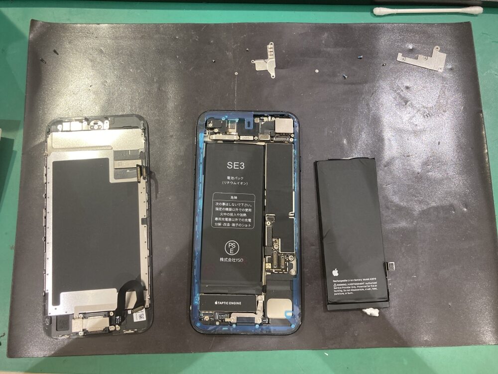 当店では、まず外観と動作のチェックを行います。その後、専用工具で慎重に端末を分解します。