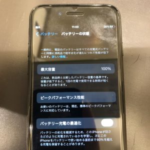 本日は充電の減りが早いiPhone7のバッテリー交換をさせていただきました。