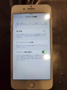 交換後のiPhone8のバッテリー最大容量の表示がこちらです。
