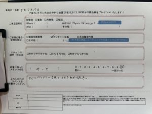 すぐにバッテリー交換いただき助かりました。 (コメントより抜粋)