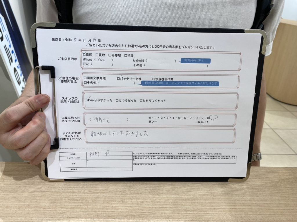スマホスピタル 大阪駅前店 【お客様の声】iPhoneSE2のバッテリー交換をさせていただきました!!