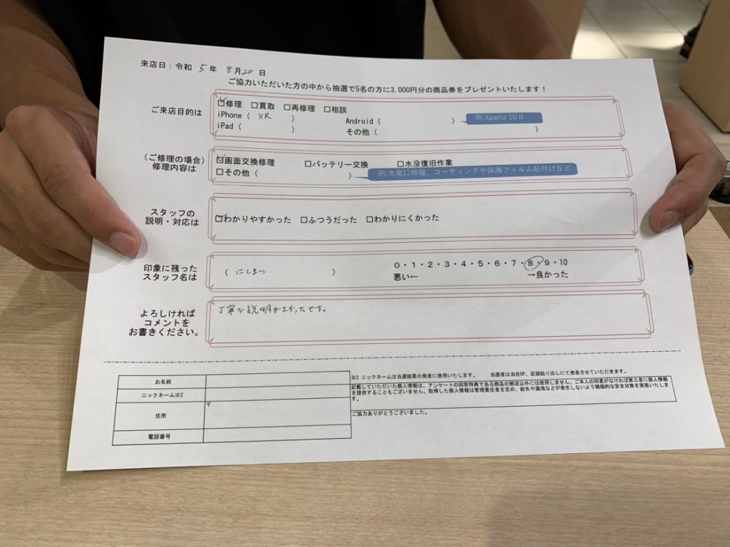 スマホスピタル 大阪駅前店 【お客様の声】iPhoneXRの画面交換!