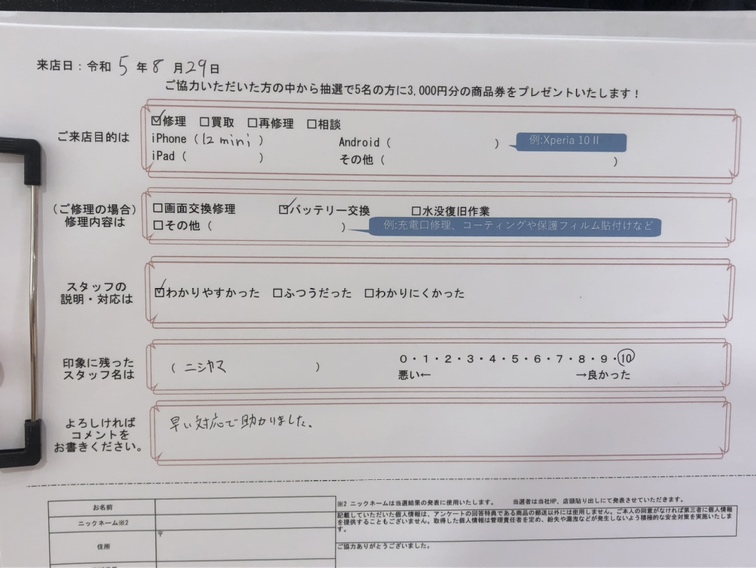 スマホスピタル 大阪駅前店 【お客様の声】iPhone12miniのバッテリー交換をさせていただきました!!
