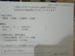 スマホスピタル 大阪駅前店 【お客様の声】iPhone 11 バッテリー交換をさせて頂きました!