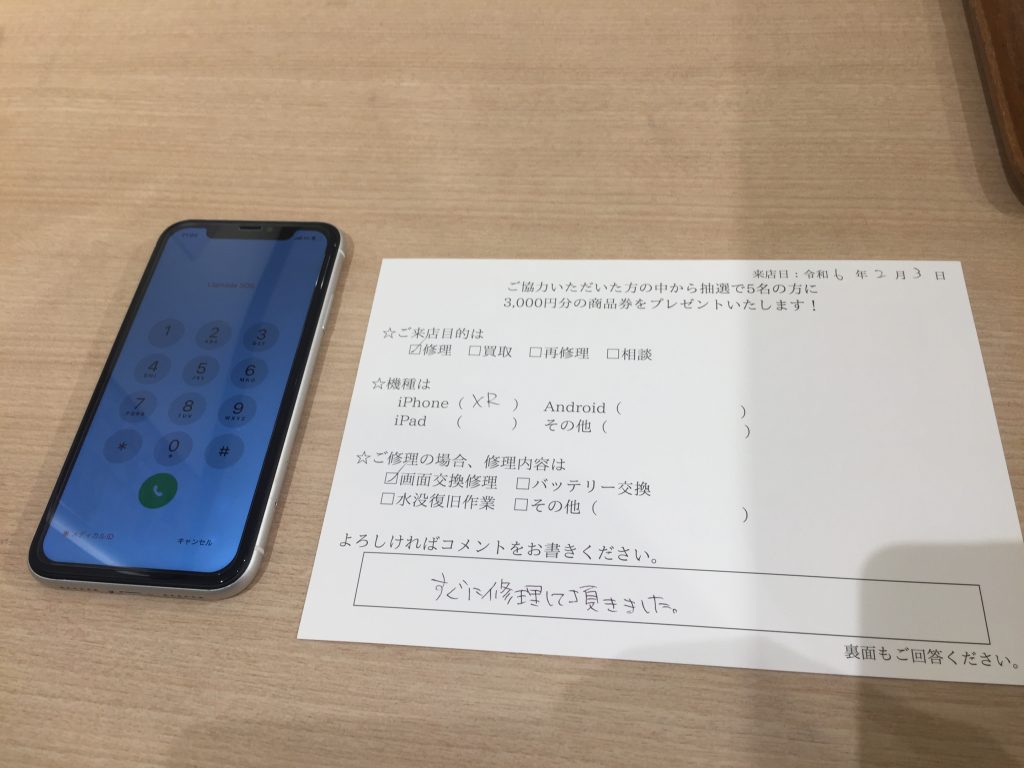 スマホスピタル 大阪駅前店 【お客様の声】大阪市よりお越しのお客様iPhoneXR画面交換修理させていただきました!