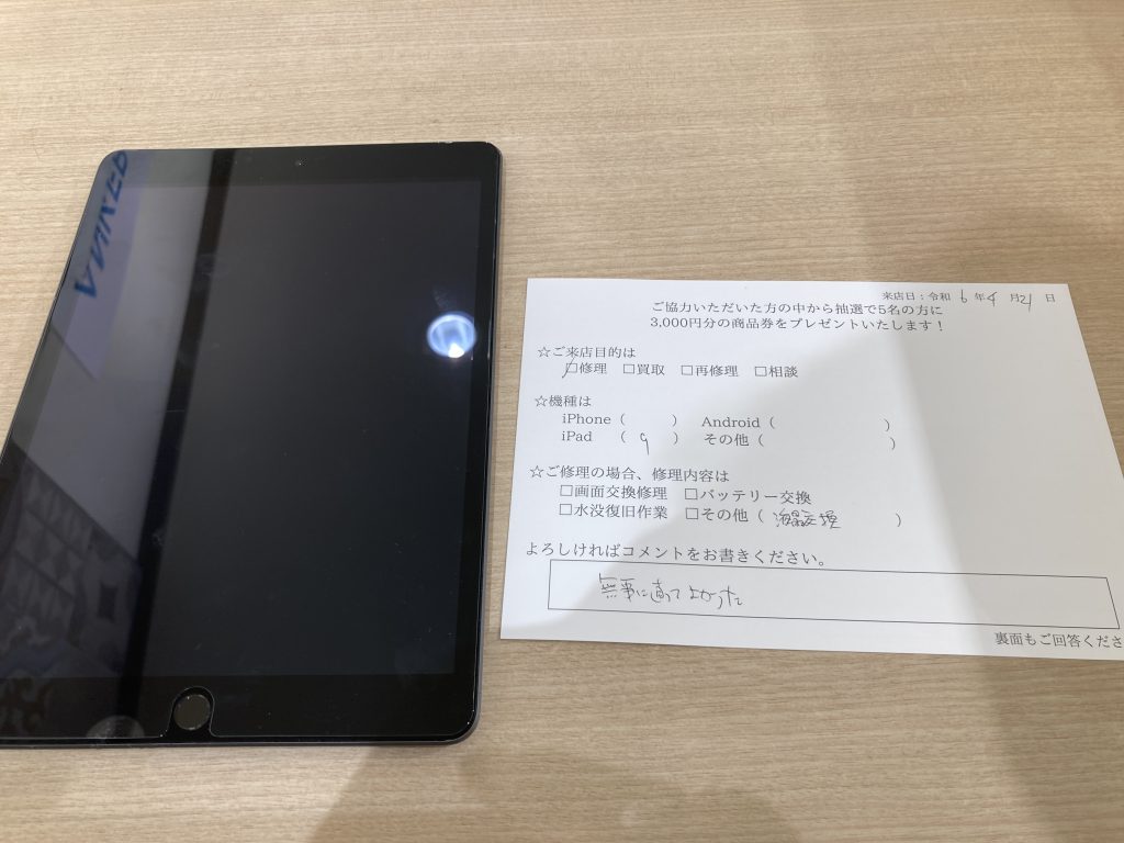 スマホスピタル 大阪駅前店 【お客様の声】大阪市よりお越しのお客様iPad9液晶交換修理させていただきました。