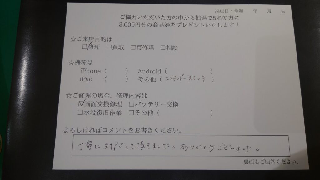 スマホスピタル 大阪駅前店 【お客様の声】NintendoSwitchの液晶交換修理を行いました!