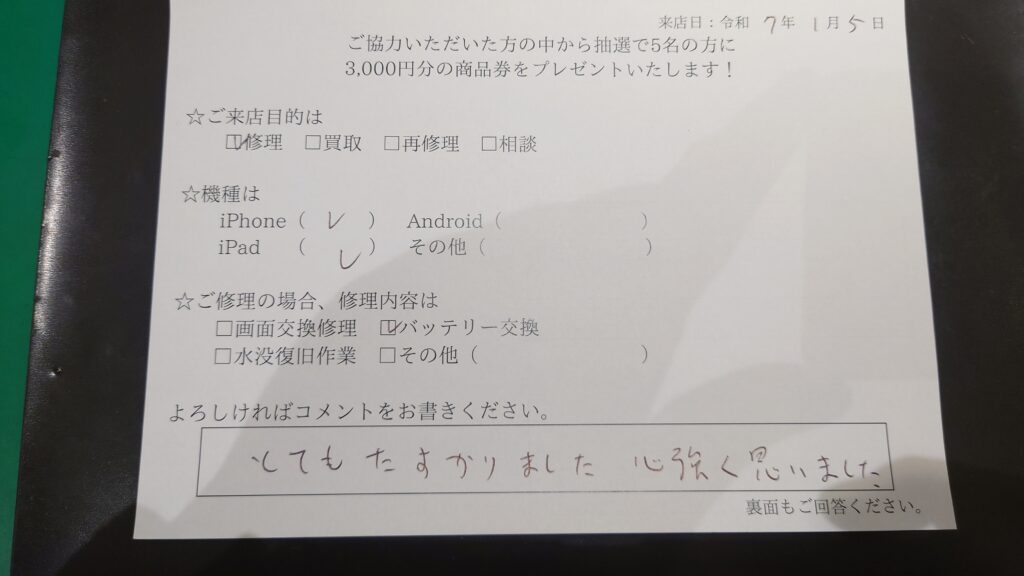 スマホスピタル 大阪駅前店 【お客様の声】iPhoneとiPadのバッテリー交換をさせて頂きました!