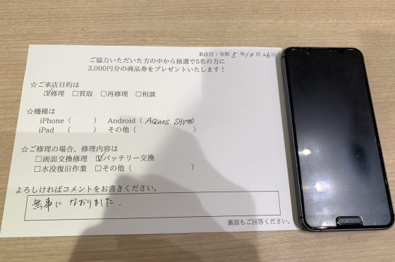 【お客様の声】AQUOS Sense3のバッテリー交換を行いました!