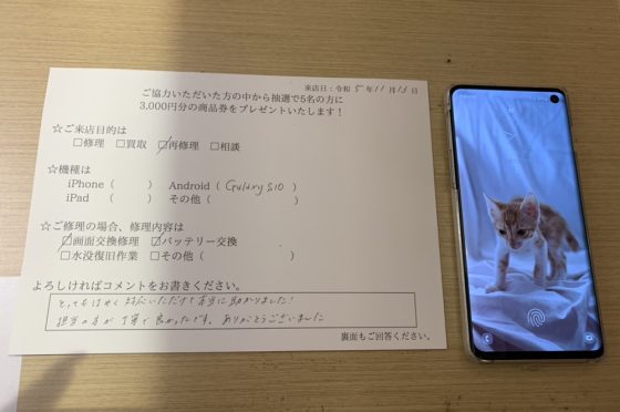 【お客様の声】大阪市北区よりお越しのお客様のGalaxy S10のバッテリーと画面交換をしました!
